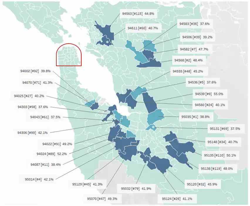 Notons que les acheteurs de véhicules électriques ne sont pas uniquement des habitants de San Francisco. Plusieurs autres villes de la région, dont Los Altos, Saratoga, ou encore Piedmont concentrent de nombreux acheteurs de véhicules propres. C’est la ville de San Ramon, où se trouve le siège mondial de Chevron, qui obtient la palme du taux de pénétration des véhicules électriques.