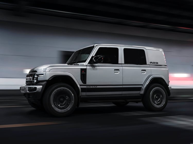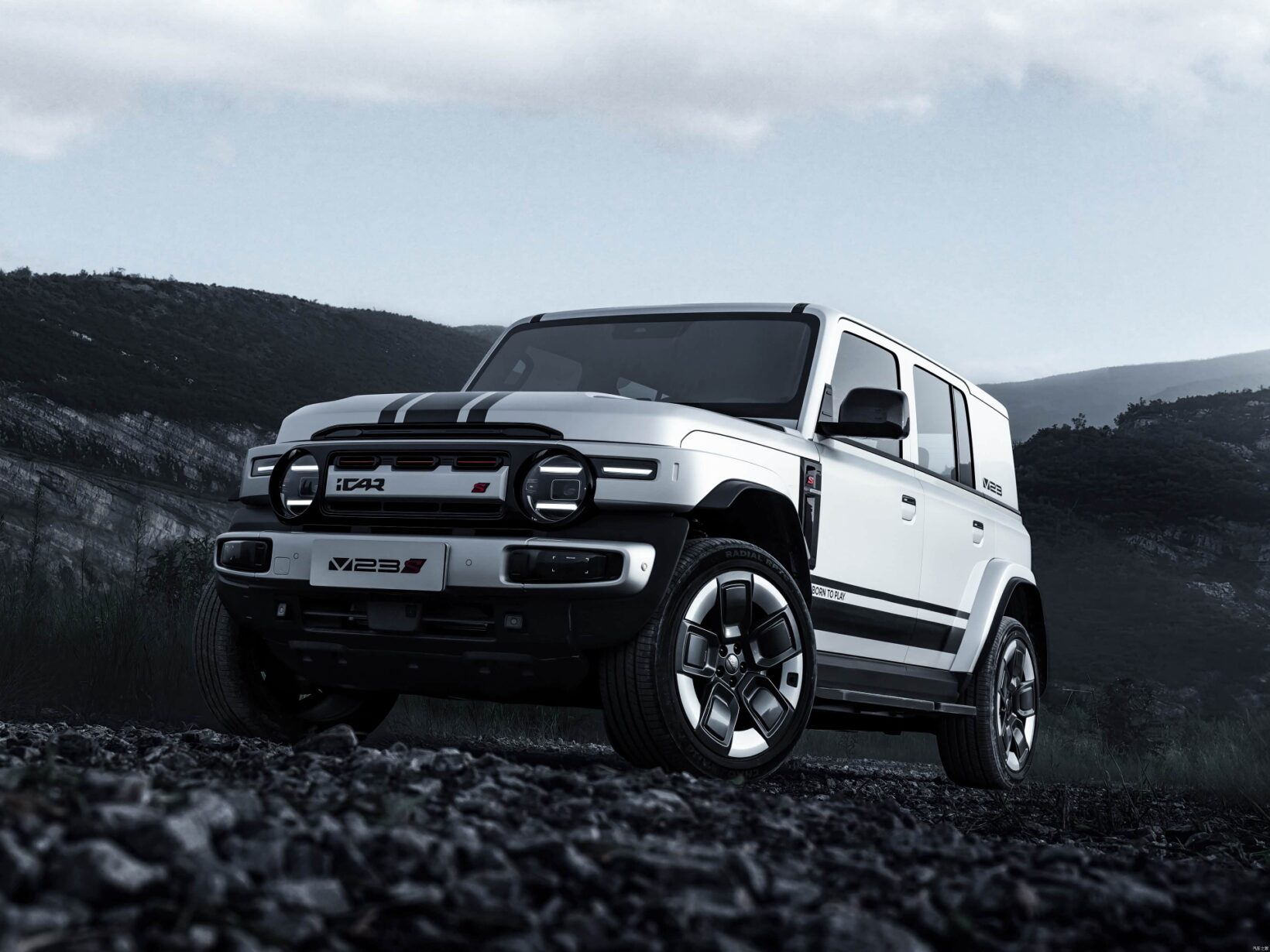 Contrairement au Tai3, le iCar V23 (groupe Chery) joue bien la carte de la (très) forte inspiration d’autres modèles tout-terrain. On y trouve du Jeep, du Defender, du Classe G. En réalité, la vraie inspiration est celle de la « Jeep chinoise », la BJ212. Qui était elle même inspirée de la vraie Jeep… Avantage de ce V23 sur la plupart des véhicules chinois : sa compacité. Il ne mesure en effet que 4,22 m de long. Disponible en propulsion ou 4 roues motrices, son autonomie approcherait des 450 km WLTP (550 km CLTC). Et son prix démarre à peine à 12 000 euros en Chine. Potentiellement sous les 30 000 euros en Europe ?