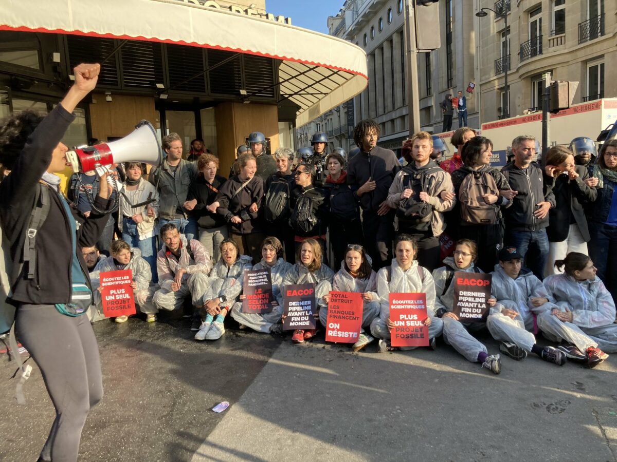 Des militants écologiques ont bloqué l’assemblée générale de TotalÉnergies à Paris. Les manifestants conjurent le groupe pétrolier d’écouter la science.