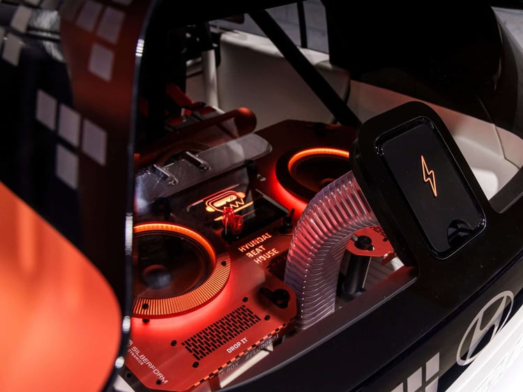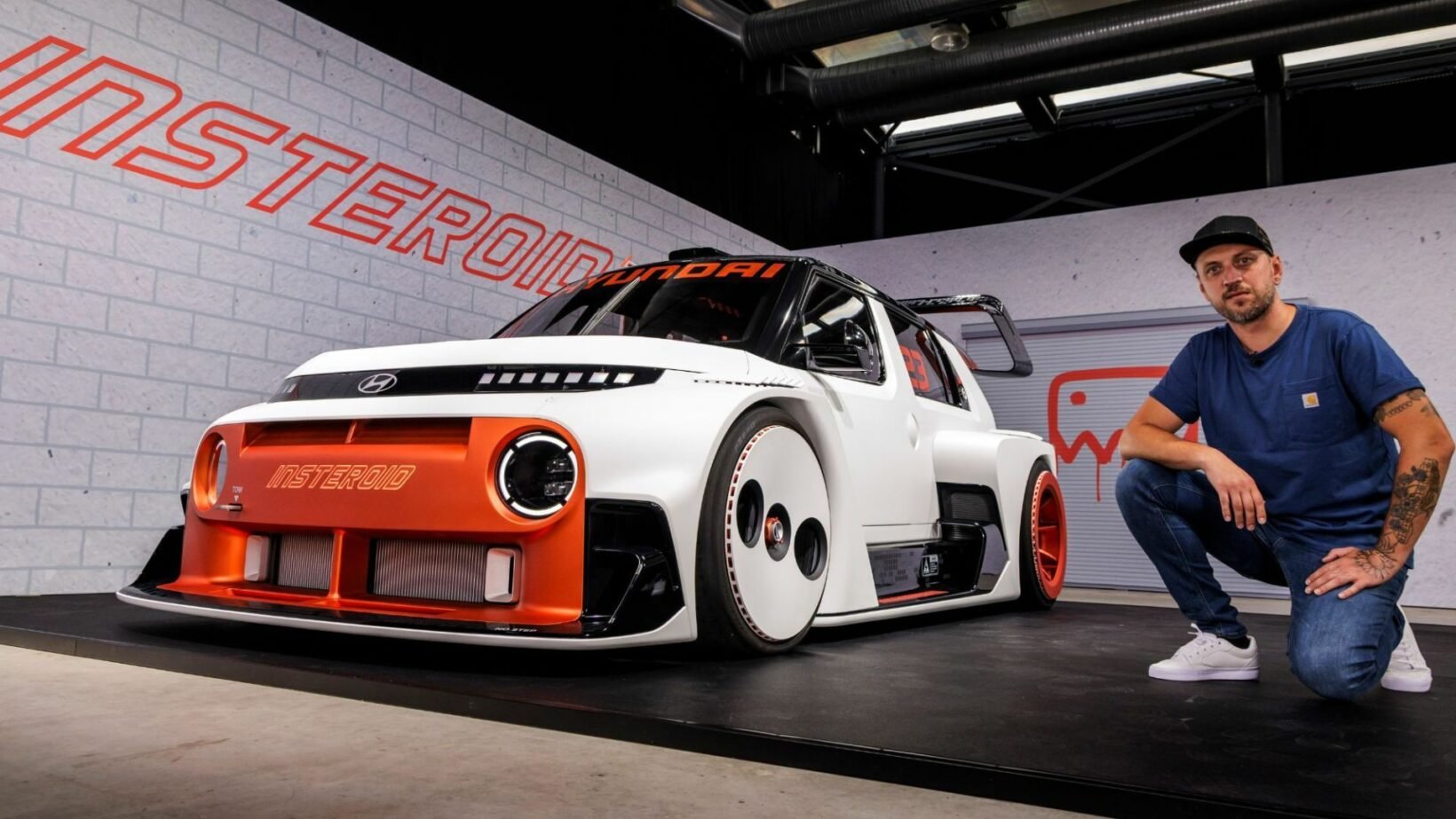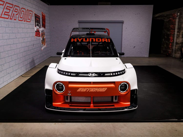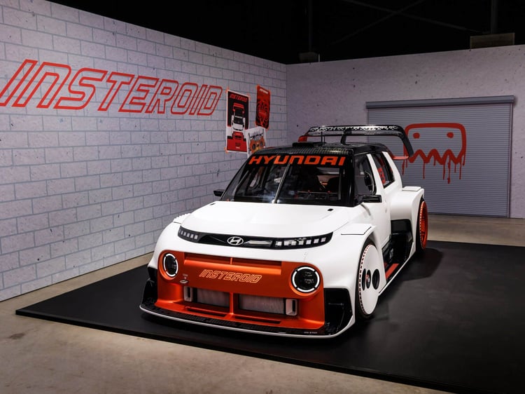 Le concept Insteroid est un exercice de style qui n’a pas la vocation à devenir un modèle de série. Il s’agit d’un délire d’ingénieurs à qui on a laissé carte blanche. Lesdits ingénieurs, probablement biberonnés au Need For Speed Underground et autres Fast and Furious, se sont fait plaisir en imaginant à quoi pourrait ressembler le gentil et mignon SUV électrique Inster sous stéroïdes. Zéro limite, zéro contrainte et par la même occasion, zéro fiche technique. Hyundai insiste, il s’agit d’un délire stylistique et non d’un projet techniquement abouti.