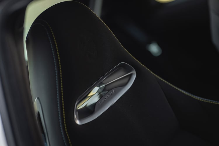 Elle sera constituée d’un modèle de base se distinguant par ses jantes alliage de 17 pouces. On retrouve le logo du Scorpion sur le moyeu de ces dernières sous forme de stickers sur la carrosserie ainsi que le kit carrosserie avec inserts de pare-chocs blancs, lettrage Abarth en gris titane foncé et coques de rétroviseurs en gris mat. Le sombre intérieur est rehaussé de touches de couleur sur les sièges sport avec des rayures bleues en relief sur le tissu et des surpiqûres bleues et jaunes. En termes de technologie, l’instrumentation numérique de 7 pouces et l’écran d’infodivertissement de 10,25 pouces avec la présentation spécifique Abarth et les services Uconnect sont de série.