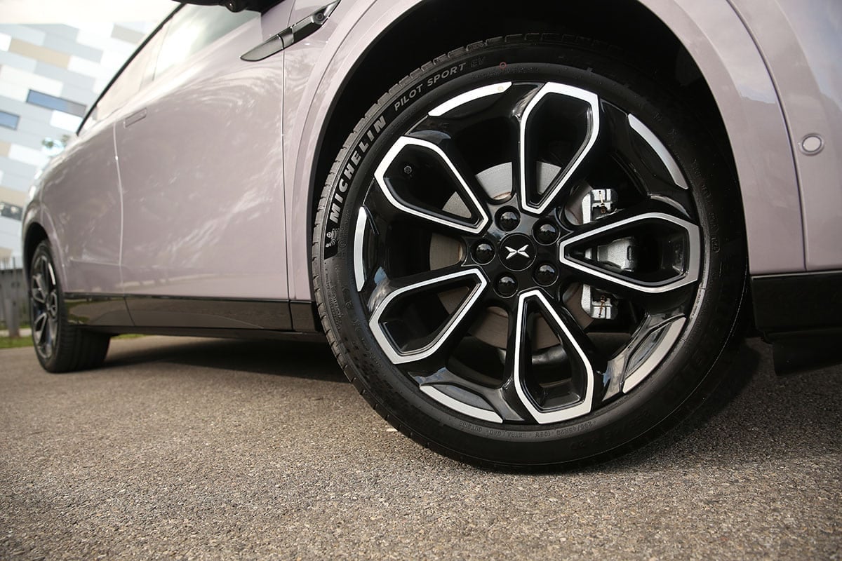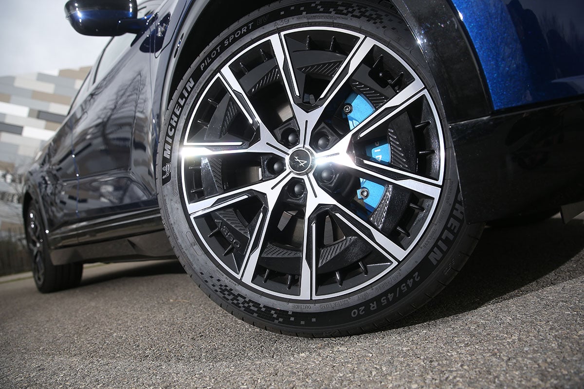 L’Alpine A390 GT repose donc sur la plateforme CMF-EV à laquelle il greffe trois machines électriques. On retrouve à l’arrière deux blocs synchrones à aimants permanents, et un bloc avant synchrone à rotor bobiné désactivé à rythme stabilisé. Dans le meilleur des cas, ces machines délivrent un maximum de 400 ch. L’ensemble est alimenté par une batterie NMC de 89 kWh de capacité nette. En face, le XPeng G6 Performance est plus commun avec une machine sur chaque essieu. La puissance totale est donnée pour 495 ch pour 600 Nm de couple. Le SUV chinois embarque une batterie LFP de 80,8 kWh de capacité, ou de 76 kWh utiles selon nos calaculs. À noter que les deux modèles d’essai étaient chaussés de pneus Michelin Pilot Sport EV, de 245/45 R20 avec l’Alpine et de 255/45 R20 avec le XPeng.