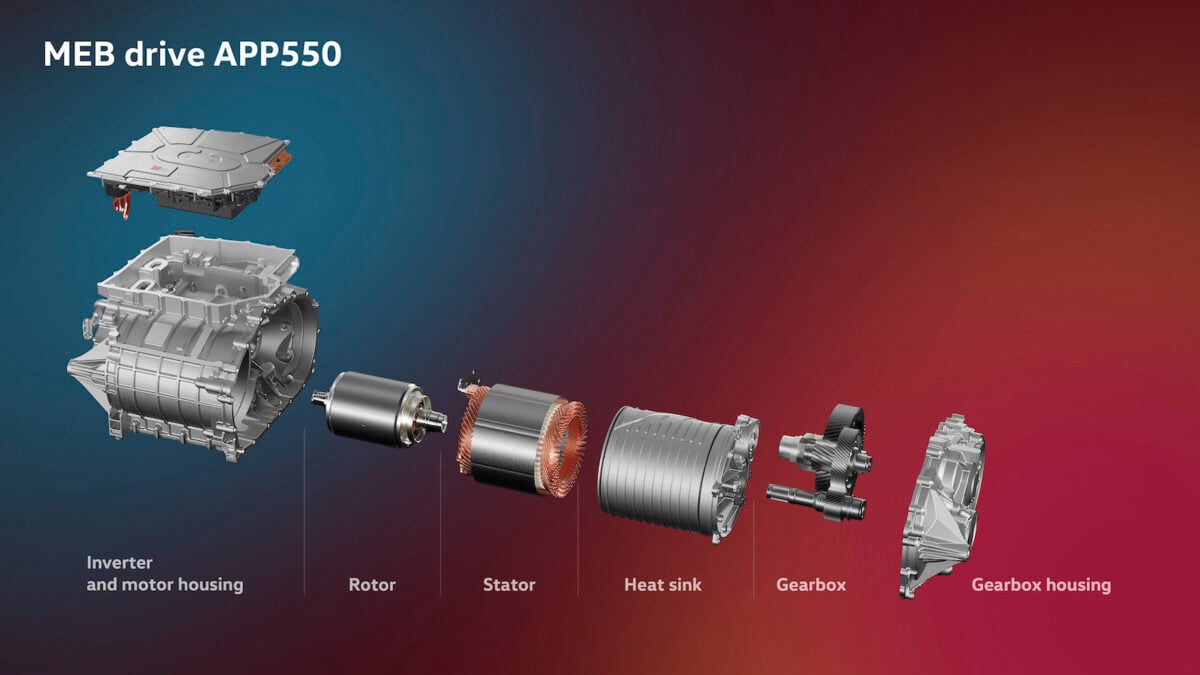 On disposait déjà de quelques informations sur l’APP550 qui est fabriqué par VW Group Components à Kassel depuis la mi-mars, avec une puissance et un couple allant jusqu’à 286 ch et 550 Nm selon le rapport de transmission du véhicule. Mais la marque allemande est allée un peu plus loin dans les détails lors des essais des prototypes camouflés auxquels nous avons été invités.