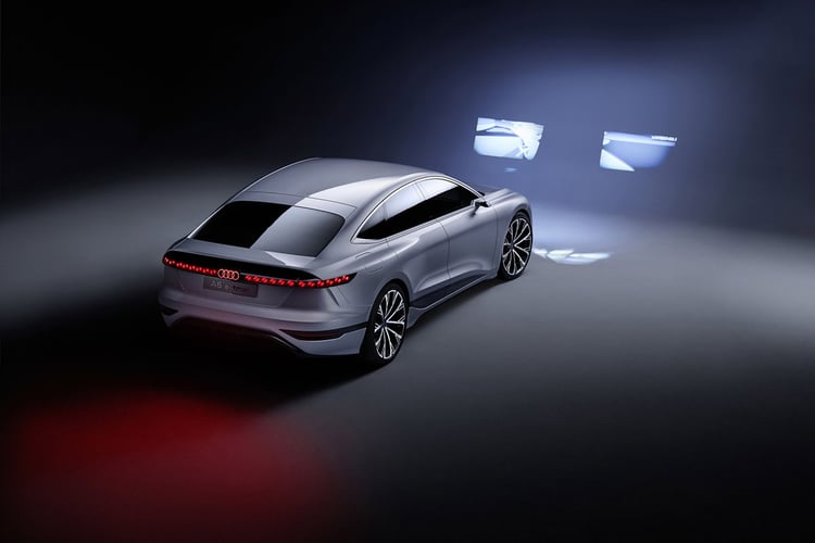 Si sa ligne semble ramassée grâce au pavillon fuyant, la berline électrique annonce tout de même une longueur de 4,96 m, soit autant qu’une Porsche Taycan ou qu’une Tesla Model S. Côté style, la berline reprend les codes du Q4 e-tron, avec un regard plissé et une large calandre Single Frame pleine. La poupe est plus inédite avec un bandeau lumineux horizontal et un large diffuseur arrière.