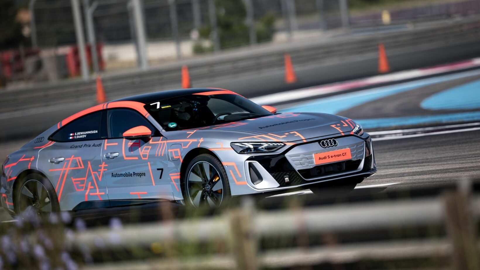 Contrairement aux éditions mettant en avant les modèles thermiques, les règles des courses en voiture électrique (Audi e-tron GT S quattro) sont… particulières :