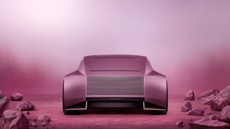 Ce qui peut frapper, c’est la couleur rose très flashy, inattendue sur une Jaguar. Là aussi, la marque veut tout changer, oubliant les références old school britanniques pour un univers très coloré, dont la présentation a été vivement critiquée. Mais le concept se décline aussi en un bleu plus sage.
