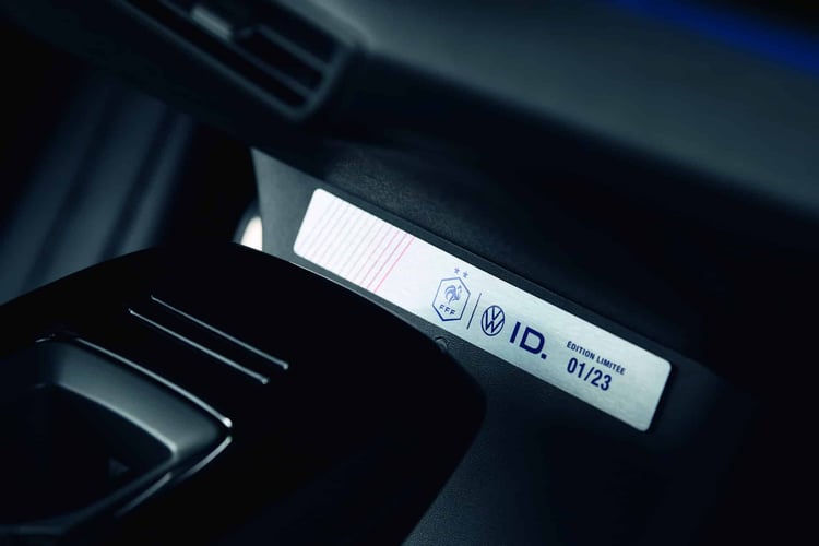 On retrouve notamment un bandeau tricolore au niveau de la signature lumineuse sur la calandre avant, sur le pilier C et sous le sigle ID.4, à l’arrière. Il y a également des badges FFF apposés de chaque côté du véhicule. Chacun de ces ID.4 sera numéroté. Les 23 modèles sont basés sur la version Pro 286 ch en finition « Life Max ». Grâce à une batterie de 77 kWh, ils offrent jusqu’à 550 km d’autonomie.
