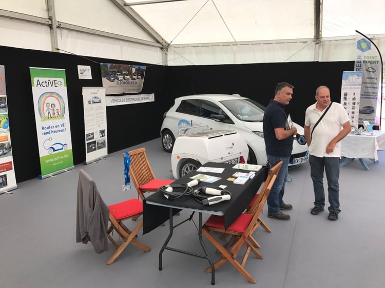 L’un des aspects intéressant du salon était aussi de pouvoir rencontrer les différentes associations qui font la promotion du véhicule électrique. Elles s’étaient réunies sur un stand aux côtés de Blue2bGreen. Les visiteurs ont ainsi pu échanger directement avec des conducteurs de voitures électriques.