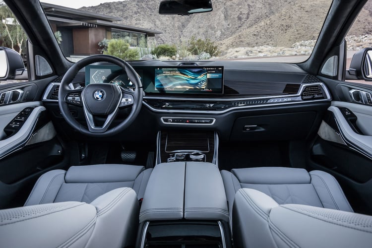 Les changements sont importants au niveau de la planche de bord, puisque le X5 adopte le « Curved Display », un ensemble de deux écrans incurvés. Le premier, pour l’instrumentation mesure 12,3 pouces, le second, pour l’info divertissement, fait 14,9 pouces. Ils sont dépourvus de casquette. La présence de ces écrans permet de réduire le nombre de boutons. De quoi dégager de la place pour une nouvelle barre d’éclairage d’ambiance.