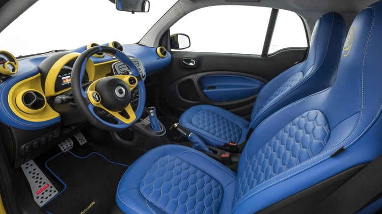 L’esthétique évidemment très sportive adopte un look anguleux un peu rétro, allant jusqu’à arborer ce qui ressemble à des échappements virtuels lumineux à l’arrière. A l’intérieur, le cuir domine et les contrastes de couleurs vives saisissent. Reste à Brabus à transformer le concept en modèle de série. Le préparateur n’a annoncé aucune date de commercialisation. Le prix devrait être aussi flashy que le véhicule puisque certains modèles de Smart Brabus thermiques se vendent à plus de 50 000 euros.