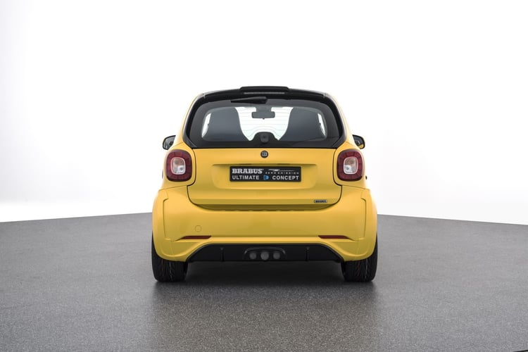 Brabus n’a pas donné beaucoup d’informations sur son concept Ultimate E Concept à Francfort. Seule certitude : la Smart fortwo électrique modifiée dispose d’un pack de batteries de 22 kWh, soit 4,4 kWh de plus que la version commercialisée actuellement. Elle est également équipée d’un nouveau moteur électrique de 150 kW (204 ch) et d’un couple de 350 Nm qui rend possible un 0 à 100 km/h en 4,5 secondes. La vitesse maximale est bridée à 180 km/h.