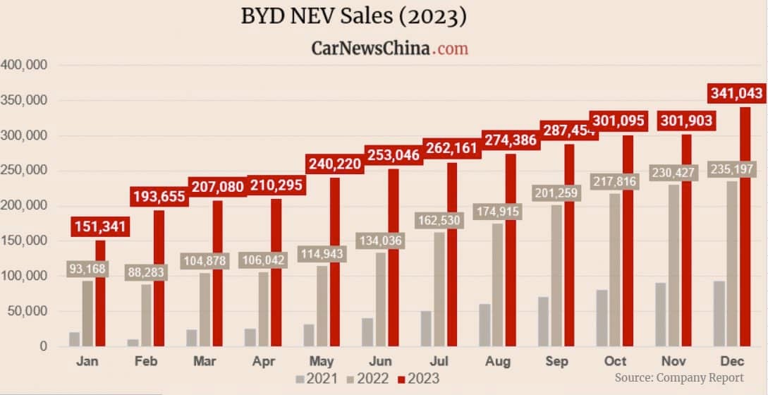 Tesla : voici le bilan des ventes 2023, avec un record et une petite déceptionBref, en 2023 BYD est devenu un acteur majeur de l’industrie automobile. L’entreprise est même celle qui vend le plus de modèles électrifiés à travers le monde. L’objectif (très) ambitieux de BYD d’écouler 3 millions de véhicules, qui avait suscité un certain scepticisme chez les experts automobile, a été dépassé. L’entreprise de Wang Chuanfu a même décidé de récompenser ses concessionnaires chinois pour fêter cette étape majeure.