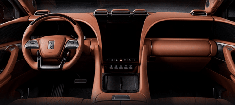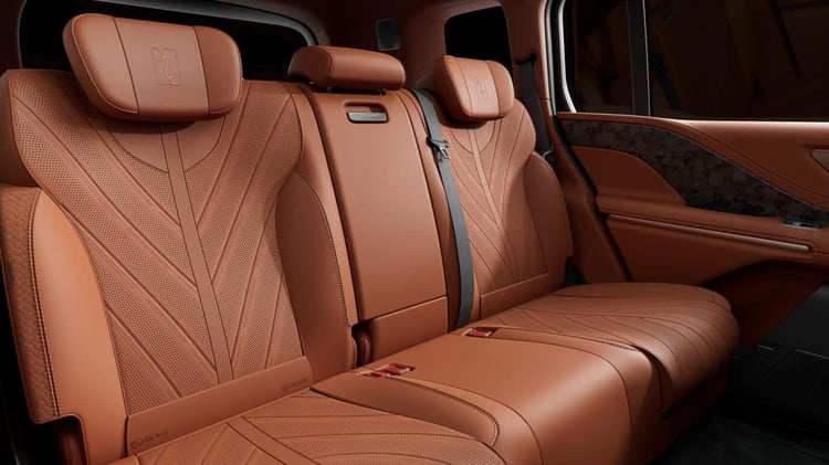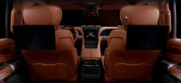 Dans l’habitacle recouvert de cuir, conducteur et passager avant disposent chacun d’un écran de 23,6 pouces et en partagent un troisième de 12,8 pouces au format portrait au centre de la planche de bord, le tout complété par un affichage tête haute HD de 70 pouces. Montés derrière les sièges avant, deux autres écrans de 12,8 pouces font face aux trois occupants de la banquette arrière auxquels peuvent s’ajouter deux passagers de plus sur une troisième rangée.