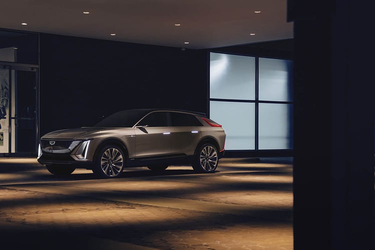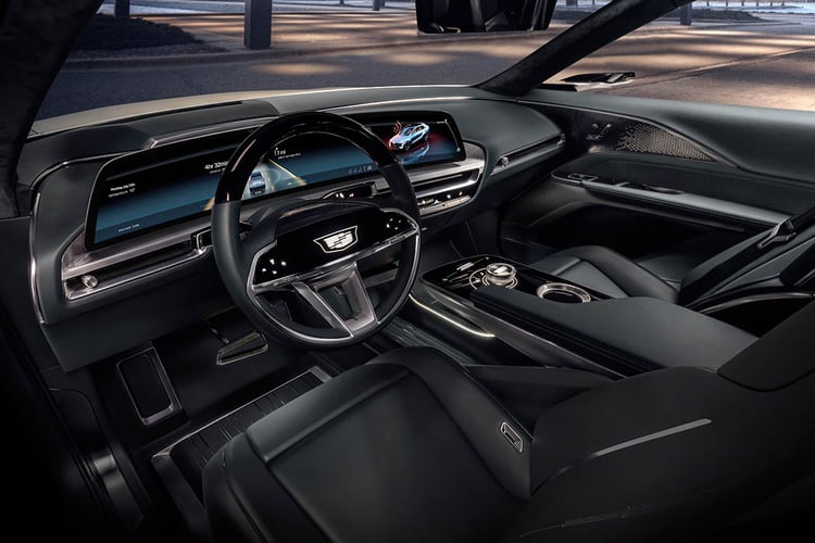 C’est notamment le cas au chapitre stylistique, puisque le SUV reprend assez fidèlement le coup de crayon du Cadillac EV Concept annonciateur de 2019. On y retrouve donc un style angulaire, avec un regard plissé sur une énorme calandre chromée (un héritage assumé des Cadillac Eldorado et DeVille des années 50-60) et éclairée. Bien qu’encore au stade de Show Car (entre le concept et la version de série), le SUV devrait conserver sa plastique sur le modèle commercialisé en 2023.