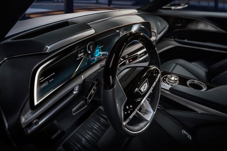 Dans ce cocon, l’énorme écran incurvé de 33 pouces assurera le spectacle. Cadillac n’a pas communiqué d’information à son sujet, mais il pourrait faire confiance à la technologie P-OLED déjà connue dans le Cadillac Escalade et afficher un milliard de couleurs. Soit 64 fois plus que dans n’importe quel véhicule disponible à ce jour. Cette dotation technologique s’accompagnera d’un système audio AKG à 19 haut-parleurs.