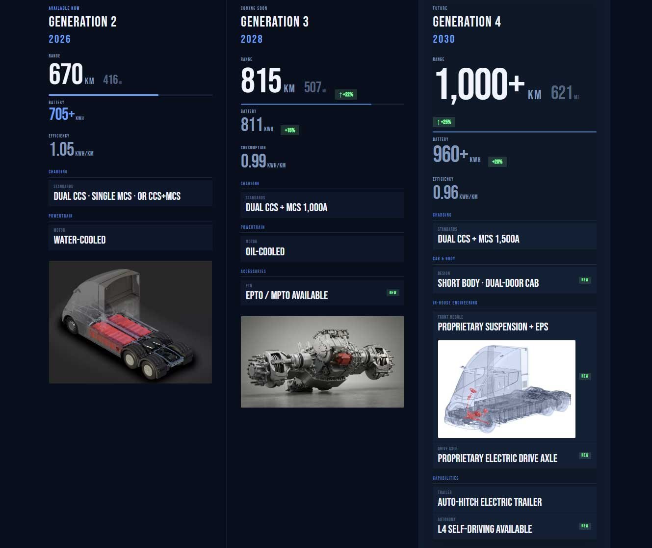 A horizon 2030, le constructeur évoque un camion capable de dépasser les 1 000 kilomètres d’autonomie, avec une batterie de plus de 960 kWh et des capacités de recharge encore renforcées via le standard MCS. À cela s’ajoutent des évolutions sur l’architecture du véhicule, comme une nouvelle cabine, un essieu moteur électrique optimisé ou encore des fonctions autonomes avancées. Bref, la compétition est lancée !