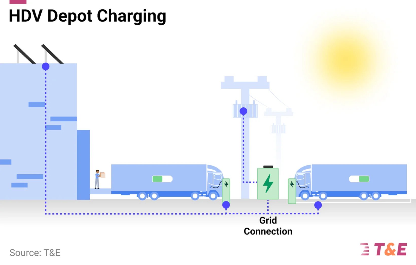 Une étude récente de Transport & Environment (T&E) confirme d’ailleurs que près de la moitié des camions en France, en Allemagne et au Royaume-Uni pourraient se recharger uniquement dans leurs dépôts. Et on a déjà des exemples concrets en Europe. En effet, plusieurs pays ont déjà commencé à adopter cette stratégie. En Allemagne, certains opérateurs ont transformé leurs dépôts en hubs de recharge pour leurs flottes.