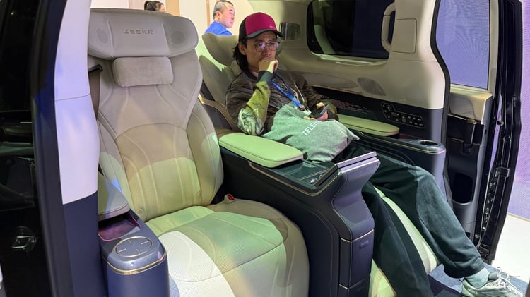 CES 2026 – De l’IA et des technologies de conduite autonome, mais peu de nouvelles voitures électriquesPar ailleurs, alors qu’on aurait pu croire à un déferlement de marques chinoises, celles-ci se sont faites étonnamment discrètes elles aussi. Seule Zeekr a daigné exposer deux voitures sur le stand de Geely, avec notamment son exubérant Zeekr 9X dans une version suréquipée. Trois rangées et six sièges individuels massants, infodivertissement de dernière génération assorti d’un écran OLED de 17 pouces à l’arrière et un système audio Naim de 3 800 W viennent confirmer le positionnement haut de gamme de ce SUV électrique. Mais ce n’est rien à côté du Zeekr 009 Grand, un minivan électrique qui donne envie d’enchainer les kilomètres assis dans l’un des deux imposants sièges inclinables à pratiquement 180°, face à un écran impressionnant de 43 pouces de diagonale.