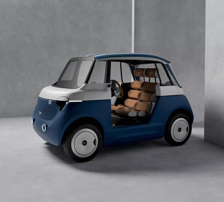 La Fiat Topolino ne laisse personne indifférent. Cette petite électrique attire l’œil et intéresse même certains célèbres carrossiers. Fondée en 1908, la Carrozzeria Garavini a récemment dévoilé sa propre version du quadricycle. La carrosserie de cette Topolino a été entièrement revue, tout en conservant la plupart des éléments du langage stylistique de Fiat. Avec un pare-chocs sculpté et des LED rondes qui rappellent la Fiat 500, l’avant a un petit côté rétro.