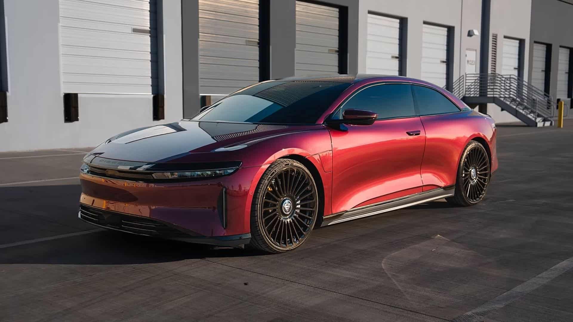 Il indique que cette Lucid Air personnalisée a été fabriquée pour être assortie à sa Rolls-Royce Cullinan rouge, que l’on peut voir en arrière-plan. Sur les photos, on constate que la berline électrique ne dispose plus que de 2 portes. Le carrossier a repoussé le montant B et créé une toute nouvelle carrosserie. L’équipe a également conçu des portes plus longues pour faciliter l’entrée et la sortie de l’ancien joueur de la NBA.