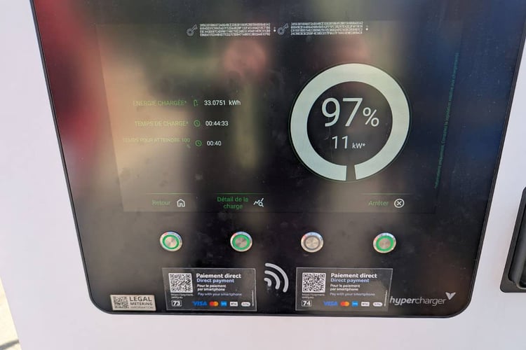 Nous avons comptabilisé beaucoup trop de voitures avec un taux de charge plus que suffisant pour aller se jeter dans les bouchons de l’A7 : d’après notre enquête terrain réalisée l’an dernier, les voitures consommeraient en moyenne près de 14 kWh/100 km dans ces conditions de roulage. Ainsi, ce Renault Scenic e-Tech débranché à 100 % pourrait ainsi tenir la charge sur 560 km, soit 9 h de route à travers les bouchons… Et dans des conditions normales de circulation sur autoroute, cela correspondrait à un rayon de 330 km avant de viser une autre borne.