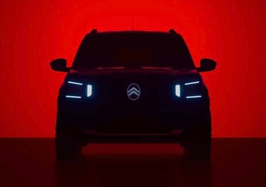 Pour l’instant, il faut se contenter d’un teaser, avec une silhouette dans la pénombre. Ou presque. Car cette C3 électrique devrait ressembler à un modèle qui existe déjà, une autre C3, plus low-cost celle-là, lancée en Inde (photo en dessous). Citroën semble avoir repris sa base. Et ce modèle a une forme plus typée SUV, ce que le teaser de notre C3 suggère aussi. On devine d’ailleurs des barres de toit. Si la forme générale sera la même, le look sera toutefois revu en profondeur, car la C3 européenne va être le premier véhicule avec les nouveaux codes de style annoncé par le concept-car Oli. On voit ainsi sur le teaser la signature lumineuse en forme de crochet. Ce sera aussi le premier véhicule de série avec le nouveau logo de la marque, placé bien droit face à la route.