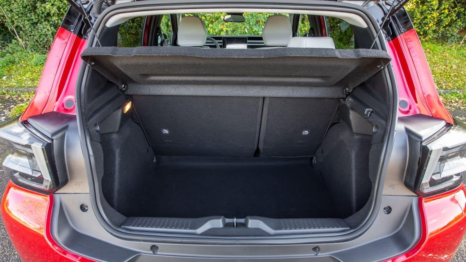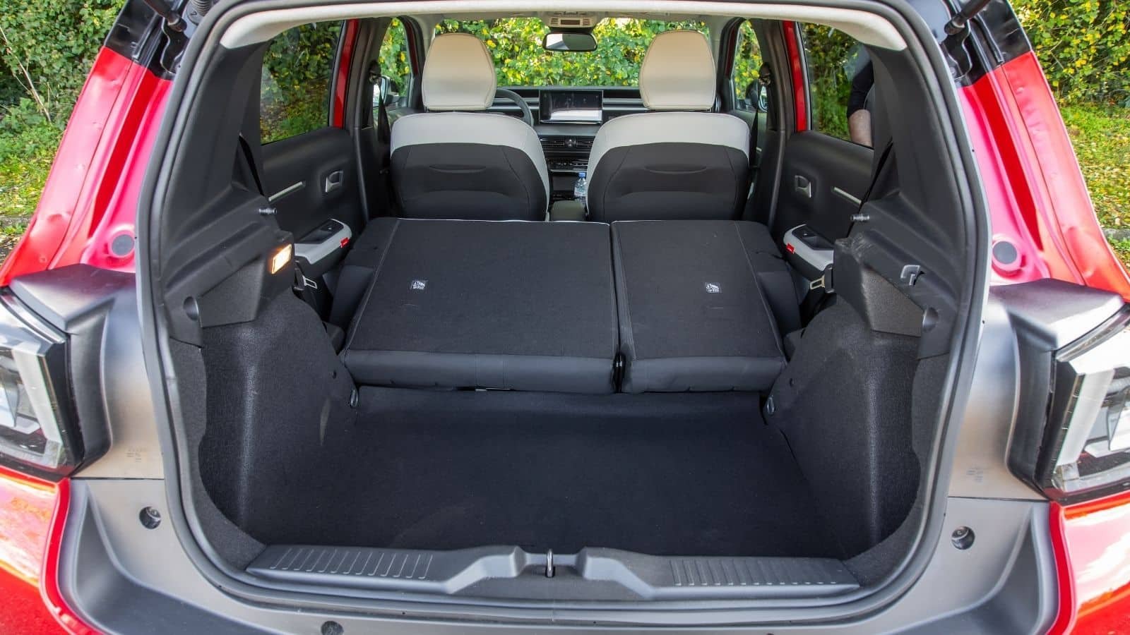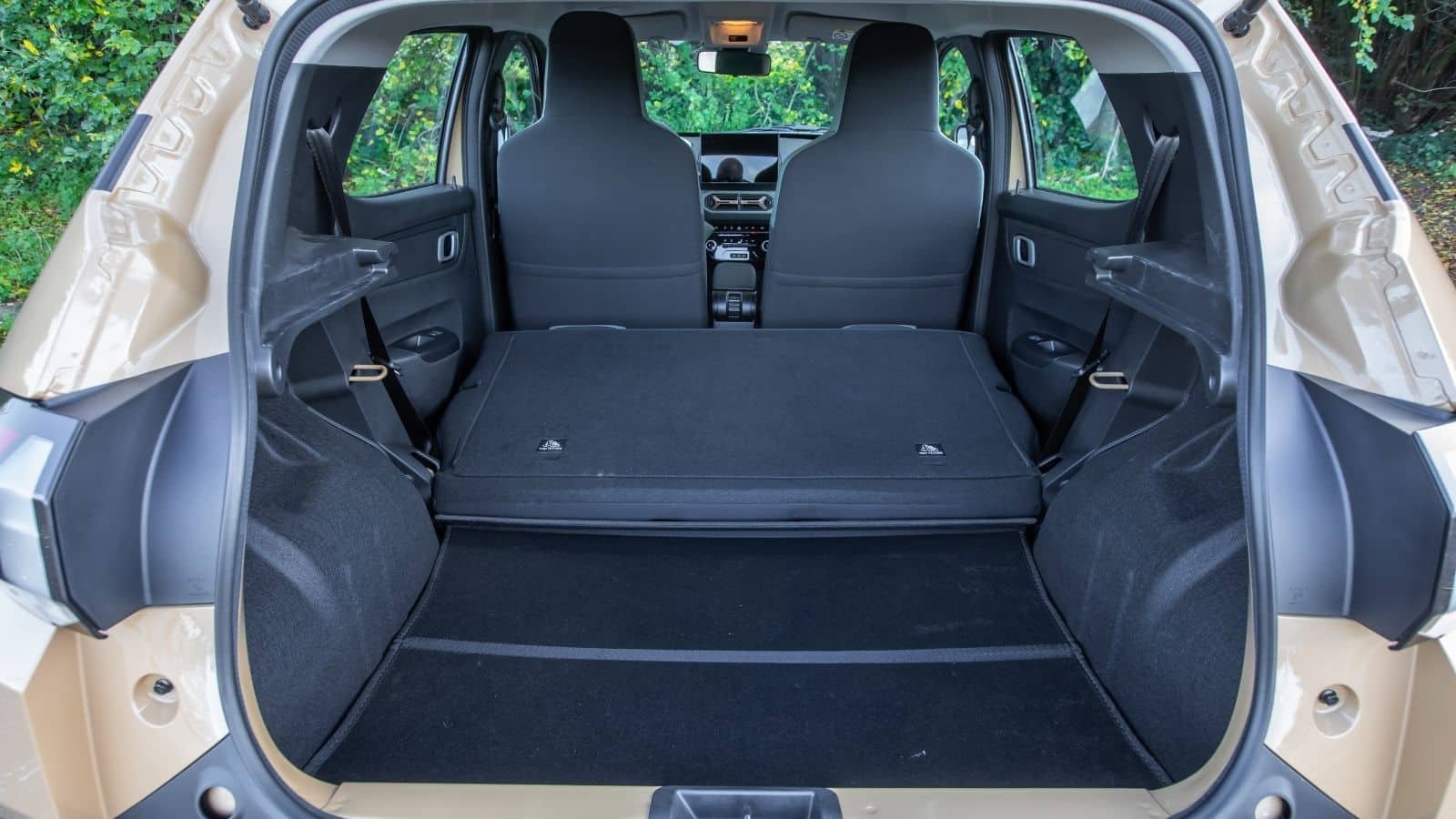 Le catalogue de la Citroën ë-C3 ne propose pas d’équivalent, alors même que le double-fond est encore plus réduit sur cette voiture. En revanche, les volumes du coffre sont un peu plus généreux (310 / 1 180 dm³) et le dossier de la banquette est en deux parties. Si son dessin est plus large, l’espace est barré par un seuil élevé qui le rend moins facile à charger.