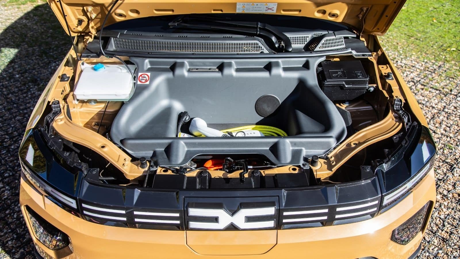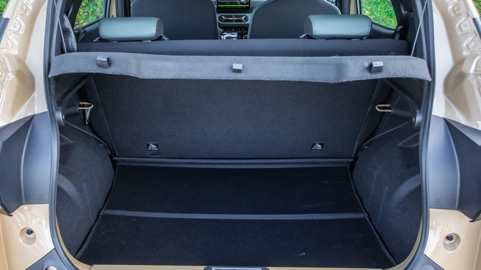 On est monté à bord de la Hyundai Inster, petit SUV électrique rival des Citroën ë-C3 et Dacia Spring !Selon que l’on baisse ou non le dossier non fractionné de la banquette dans la Dacia Spring, le volume VDA du coffre est de 288 ou 975 dm³. De série, le double-fond ne servira quasiment qu’à loger le nécessaire de secours. Il est cependant possible de faire mieux avec deux accessoires pour ranger plus que les câbles de recharge : le double plancher à trois compartiments (200 €) et le frunk (175 €).