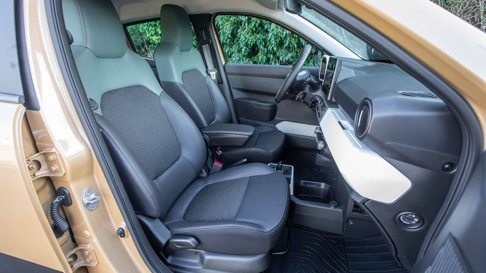 Un des points où la Dacia Spring est en net progrès, c’est sur le combiné d’affichage numérique avec des informations bien présentées et la tablette centrale modernisée compatible Apple CarPlay et Android Auto. Sur les sièges avant, le conducteur et son passager ne sont pas mieux accueillis qu’à l’arrière : « Au niveau de l’assise, c’est toujours peu confortable et on n’est pas maintenu ». De même pour la finition : « Elle est vraiment très légère et le bruit des portières quand on les referme fait même un peu peur ».