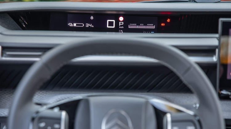 C’est un peu mieux dans la Citroën ë-C3 qui abat immédiatement ses atouts une fois à son volant : une bonne sellerie, un frein à main électrique, un petit volant agréable à manœuvrer, l’impression de mieux dominer la route : « Par rapport à la Spring, c’est le grand luxe, c’est une limousine, et on est sur des amortisseurs à butées hydrauliques ».