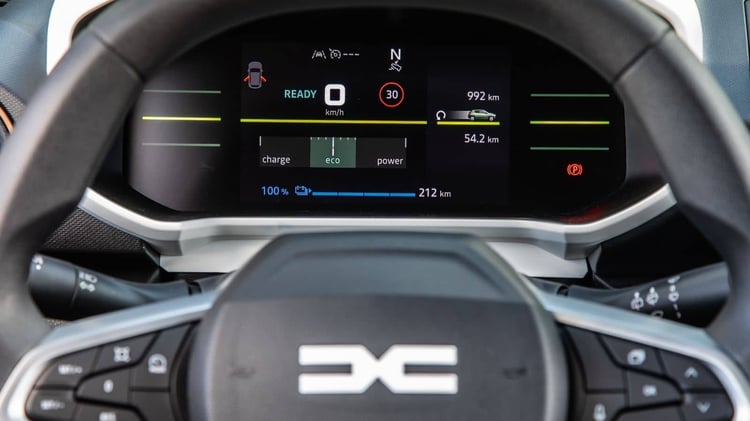 Bénéficier de la recharge en courant continu sur la Dacia Spring coûte 500 euros de plus, avec une puissance qui ne dépassera pas les 30 kW. Retrouver 80 % d’énergie à partir d’un niveau de 20 % prendra tout de même 45 minutes : « C’est assez long, mais ça dépanne et ça peut être pratique ».