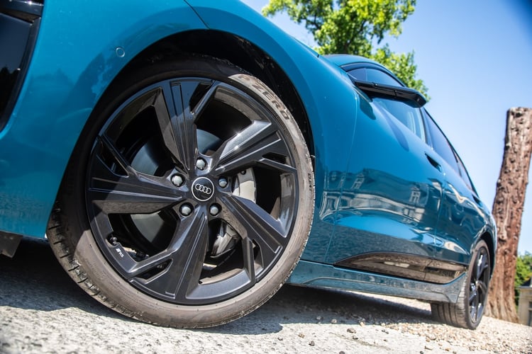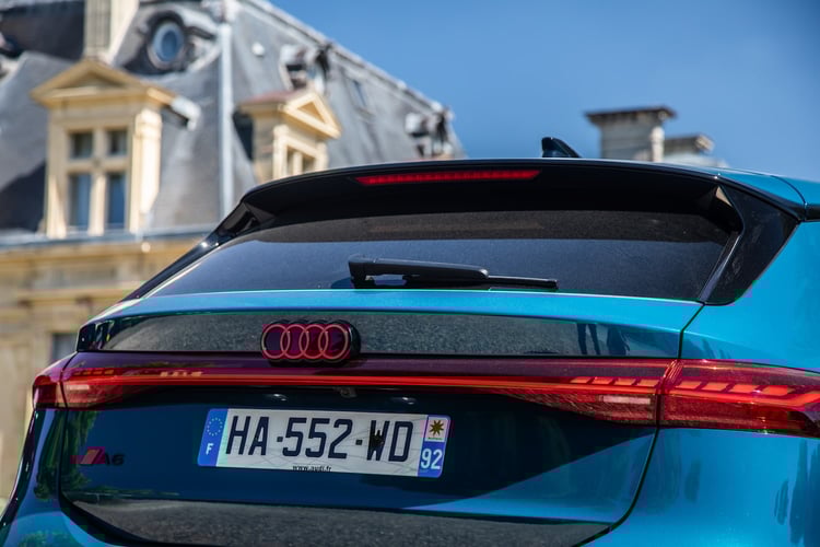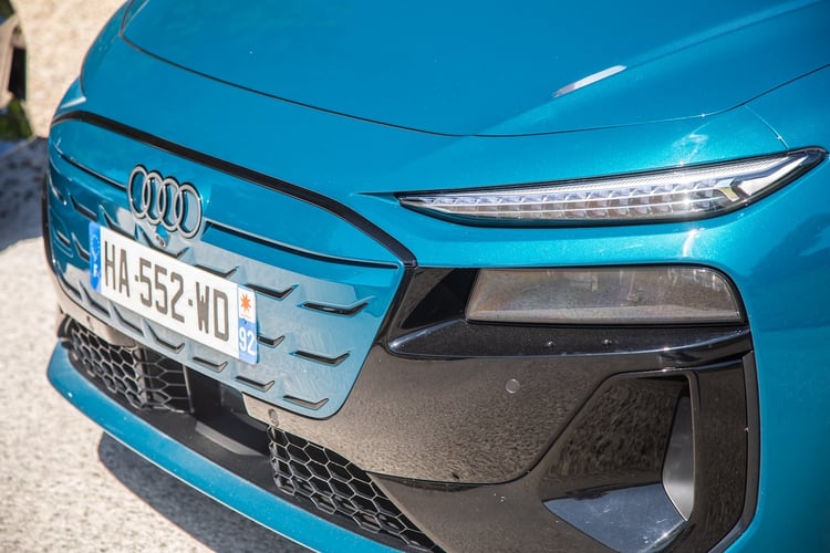 Pour se distinguer, notre Audi A6 Avant e-tron Performance S line mise sur des jantes Audi Sport 21 pouces au style dynamique (910 €), des projecteurs Matrix LED, des feux arrière LED Pro, une peinture bleue Malpelo métallisée (1250 €), un pack Esthétique Noir (950 €) et des rétroviseurs extérieurs virtuels à 1750 €.