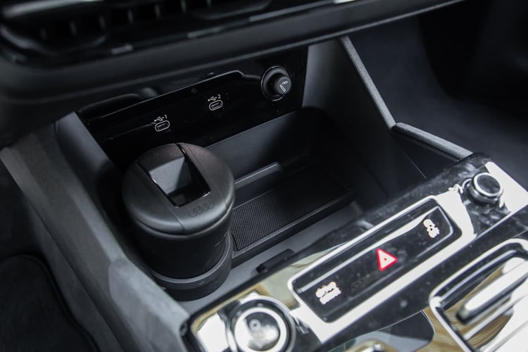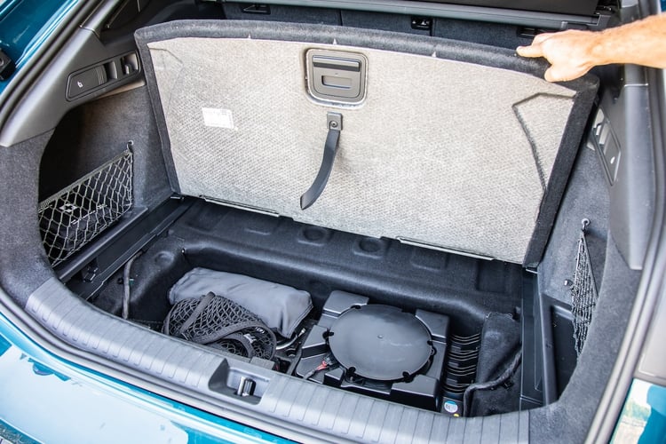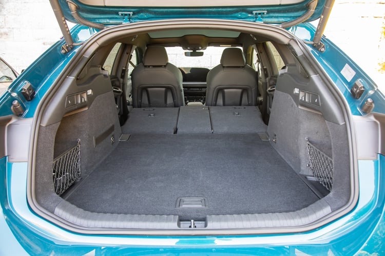 L’Audi est un peu moins logeable et offre un peu moins de double fond, mais se rattrape avec la présence d’un frunk sous le capot avant, toujours pratique pour ranger ses câbles. Dans les deux cas, les banquettes se fractionnent en trois parties 40/20/40 et se rabattent à plat facilement grâce à des manettes sur les parties latérales du coffre.