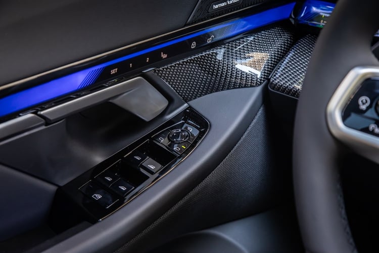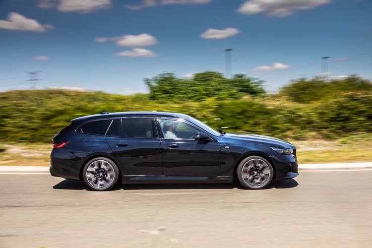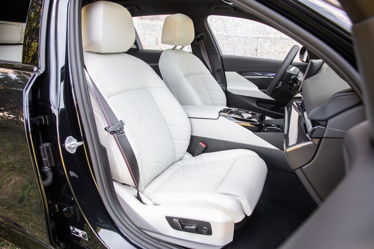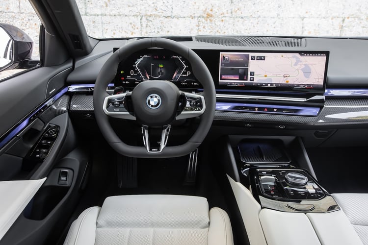 Avec le pack Adaptive Pro et ses roues arrière directrices (2050 €), la BMW i5 fait oublier son poids élevé en assurant une belle agilité dans le sinueux tout en conservant une excellente filtration des chocs. Notons que les modèles de base sans suspensions pilotées reçoivent tout de même des suspensions pneumatiques sur le train arrière mais sans réglage de la garde au sol. La bavaroise se distingue également par la précision de sa pédale de frein plus progressive qui donne un sentiment de mordant plus marqué.