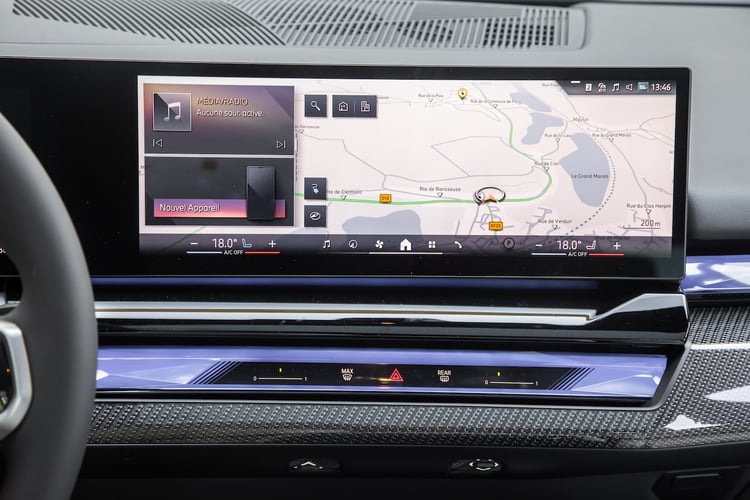Côté multimédia, la BMW facture un pack Innovation à 2500 €, incluant l’écran incurvé « Curved Display » (12,3 + 14,9 pouces), l’affichage tête haute (HUD) et l’aide au parking. Un système audio HiFi 12 HP figure de série mais peut être remplacé par un système Bowers & Wilkins à 4600 €.