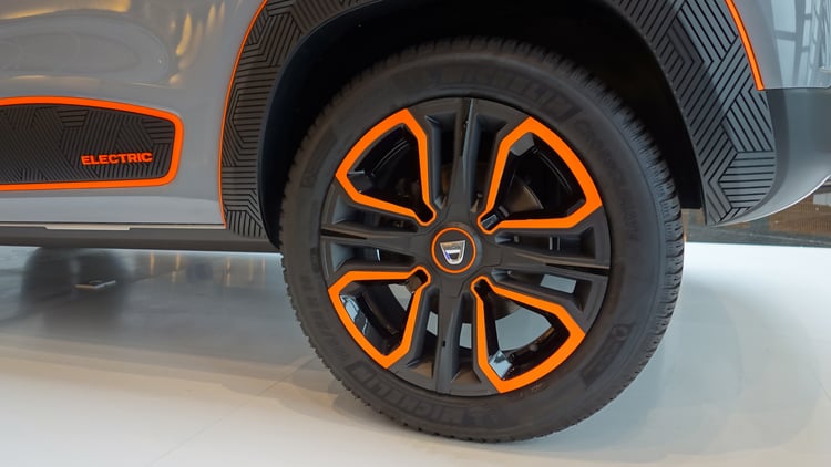 Si la Dacia Spring est bien là pour casser les prix, ce n’est pas au détriment du look. Il se veut fun sur le concept avec les coups de Stabilo orange qui surlignent les arches de roue, le groupe calandre-optiques, les rétroviseurs, les poignées de porte, les protections latérales, les échancrures des jantes en alu, etc. Cette audace sera-t-elle conservée lors du passage en série ?