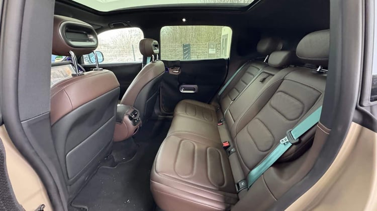 À l’avant, le volant et les commodos sont semblables à ceux des autres Smart « chinoises ». On retrouve aussi l’excellente qualité de fabrication et la finition soignée des #1 et #3. L’équipement est à la page avec des sièges chauffants à réglages électriques, deux chargeurs à induction, un éclairage de boîte ou encore une chaine Hi-Fi à 20 HP signée Sennheiser. Les nombreuses caméras permettent d’avoir toutes les assistances à la conduite et une vue à 360° pour se garer. À cela s’ajoute des capteurs ultrason assurant une détection encore plus précise des obstacles à faible distance.