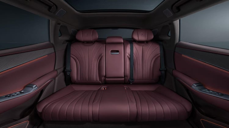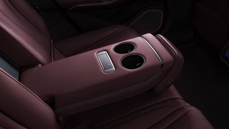 L’habitacle est habillé de cuirs et de boiseries fumées. L’air est climatisé en quatre zones. Les amples fauteuils avant se règlent en 12 directions. Tous les occupants bénéficient des sièges chauffants, ventilés et massants. Deux espaces de rangement sont réfrigérés jusqu’à – 6°C. Le champagne restera frais.