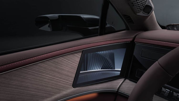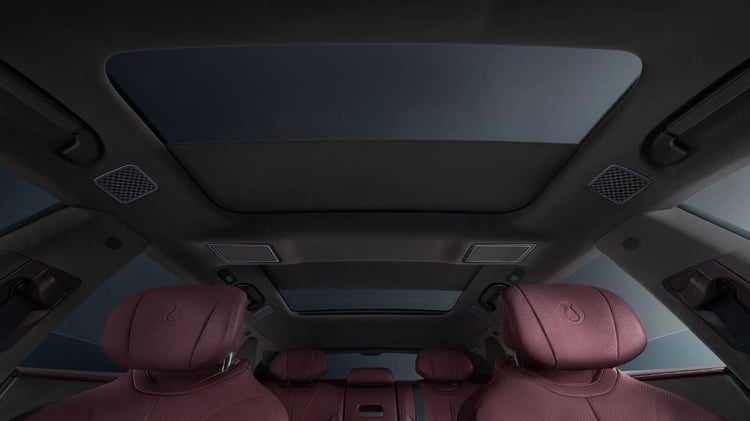 Trois écrans s’incrustent dans la planche de bord. La dalle centrale 17,3 pouces est accompagné par une autre tablette 13,3 pouces, dévolu aux activités numériques du passager avant. Les occupants pourront choisir parmi 128 teintes pour l’éclairage led et l’habitacle est éclairé par un pavillon transparent de 2 mètres carrés. La sono est assurée par 20 haut-parleurs Devialet.