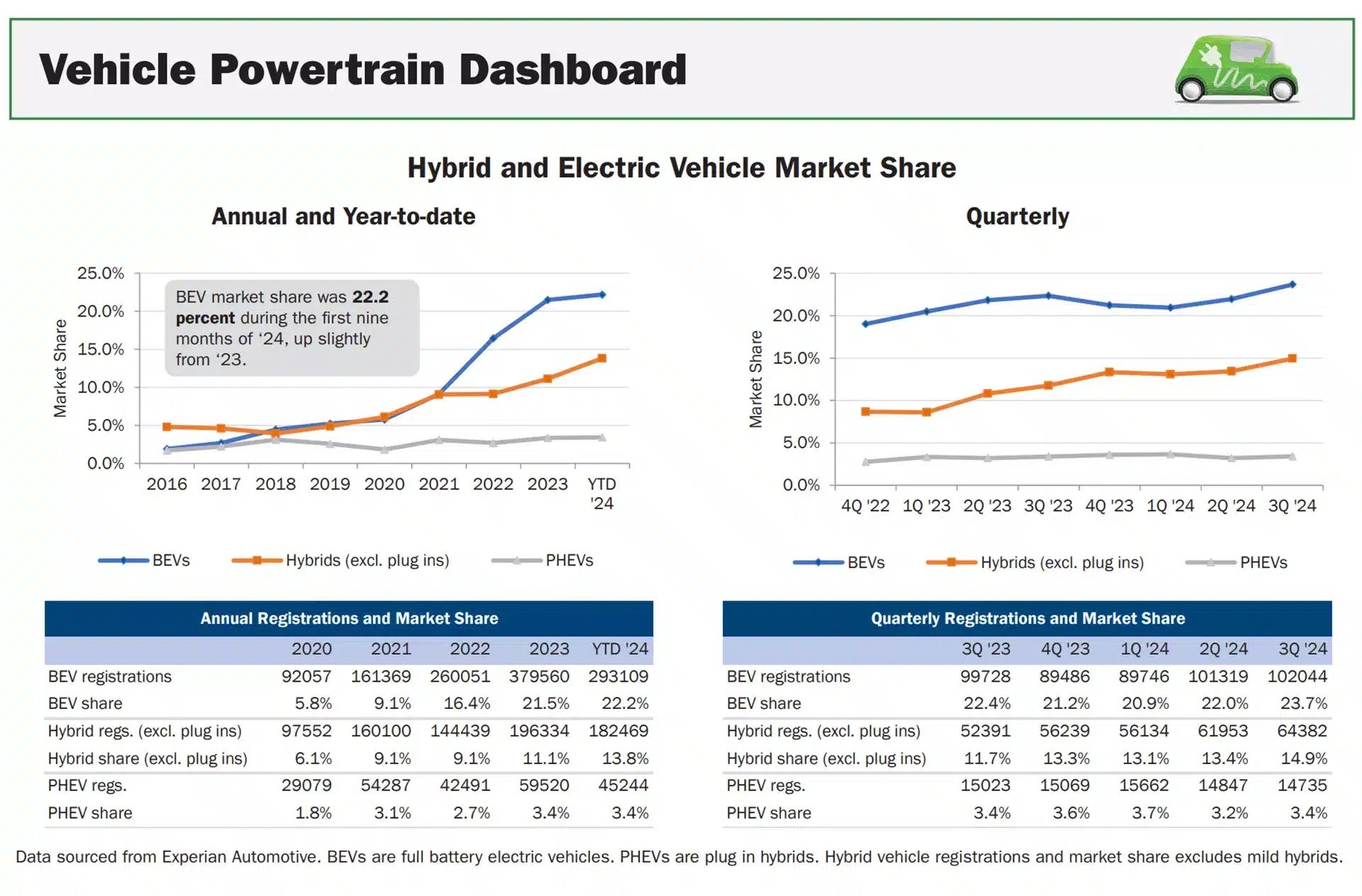 Entre janvier et septembre 2024, 1 320 708 nouveaux véhicules légers (toutes motorisations confondues) ont été immatriculés en Californie. Comme un peu partout dans le reste du monde, le marché automobile de l’État de l’ouest américain s’est affaibli. La California New Car Dealers Association (CNCDA) s’attend à ce que 1,75 million de nouveaux véhicules soient immatriculés au cours de 2024.