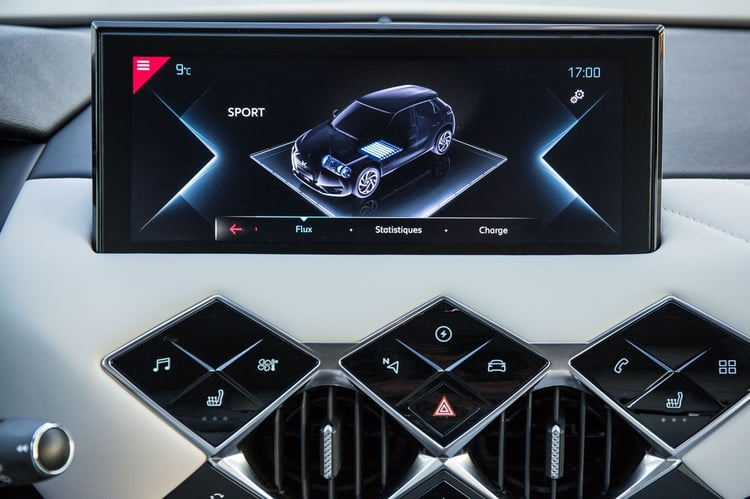 En termes d’usage, DS a choisi de rester simple pour ne pas effrayer les néophytes. Eco, Normal ou Sport… seuls trois modes de conduite sont proposés. Ces derniers viennent limiter le couple et la puissance de la voiture : 100 kW en mode sport, 80 kW en mode normal et 60 kW en mode Eco avec une limitation du chauffage et de la climatisation.