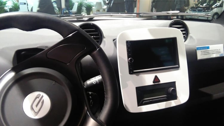 Le jeune constructeur n’ayant pas encore finalisé l’homologation de la e.Go Life, la voiture au volant de laquelle je me suis assis n’était encore qu’un prototype et je n’ai pu rouler que quelques petites minutes autour d’un circuit aménagé à l’extérieur des bâtiments de la foire. Trop peu, évidemment pour vraiment tester le modèle et ses performances. Habitué à conduire quotidiennement une Zoé j’ai toutefois pu me rendre compte que le comportement en route de la version e.Go Life 60 était fort similaire à celui de la citadine au losange. Accélération, freinage, tenue de route dans les virages : j’aurais pu me croire au volant de ma Zoé. Pas très étonnant lorsqu’on constate que les performances techniques affichées pour la e.Go Life 60 sont fort similaires à celles de la Zoé : puissance de 60 kW, vitesse de croisière de 135 km/h, 0-50 km/h en 3,7 secondes et diamètre de braquage de 9 m.