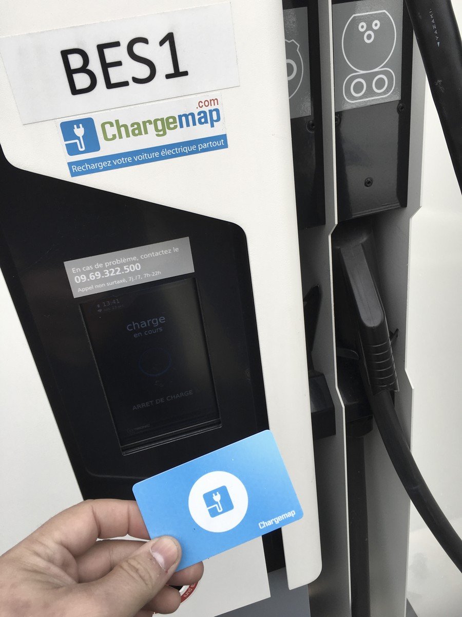 Le premier arrêt de recharge sollicite déjà l’application ChargeMap : nous choisissons la borne Sodetrel Corri-Door de Besançon pour nous recharger. Grâce au ChargeMap Pass, l’activation de la borne suscite aucun problème et nous repartons en un rien de temps.