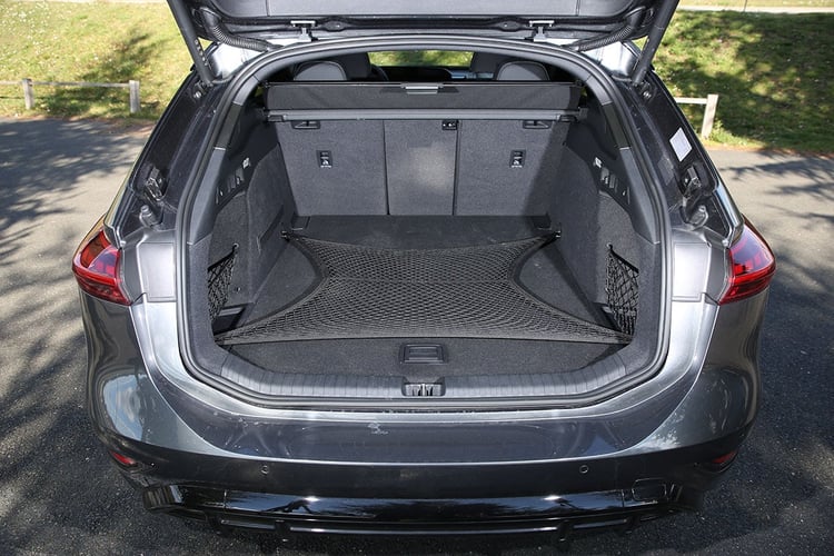 Sans effet sur la longueur de la voiture (4,93 m de long), ni même sur le volume de coffre annoncé, la carrosserie break ne permettra réellement que de charger des objets à peine plus haut au fond du coffre, sans plus. Cette carrosserie n’est donc qu’une affaire de style. Et quel style, notamment avec les jantes Style S de 21 pouces (250 €) fidèle au concept, que n’avait pas notre modèle d’essai équipé de tristes jantes Audi Sport noires. Mais c’est un look qui se paie, d’une part avec une petite rallonge de 1 500 €, mais d’autre part un coefficient de traînée aérodynamique qui passe de 0,21 à 0,24, augmentant la consommation de 1 kWh/100 km et rognant une quarantaine de kilomètres d’autonomie.