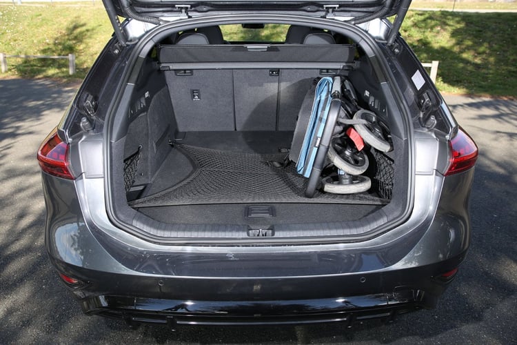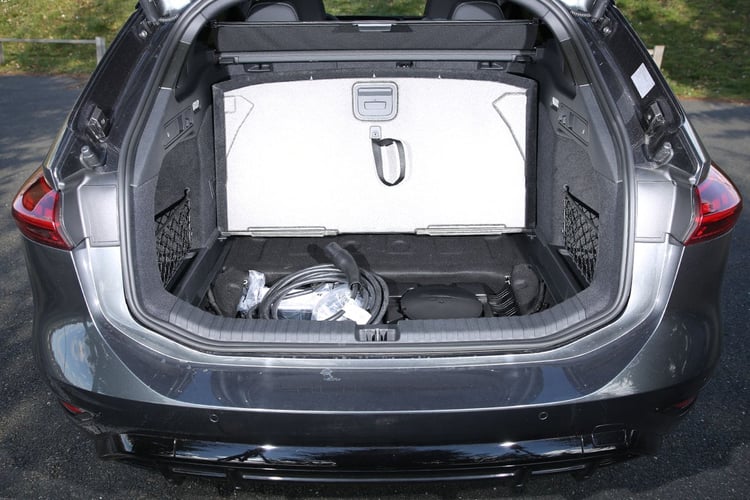 Au quotidien, ce volume s’avère plutôt suffisant : notre poussette Thule Spring témoin y loge sans souci dans toutes les positions. Sous le plancher, un bac est prévu pour ranger les câbles, mais accéder à cet espace demande souvent de vider une partie du coffre : la pliure de la plaque est trop reculée, et s’ouvre sur une partie de la caisse. Mieux vaut utiliser le petit espace de 21 l sous l’immense capot qu’il est possible d’ouvrir en caressant le bouclier. Utile, mais pas agréable quand la carrosserie est sale.