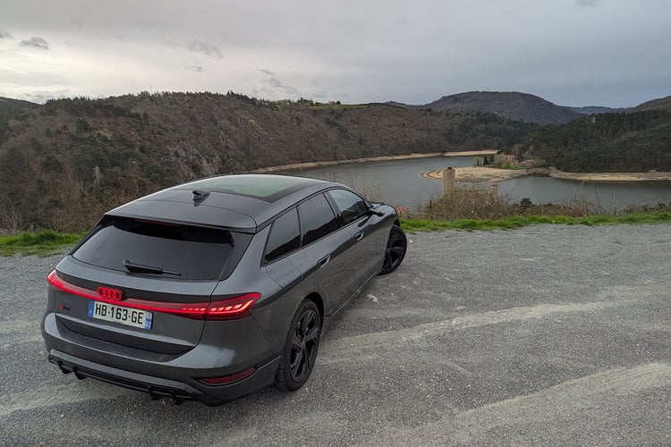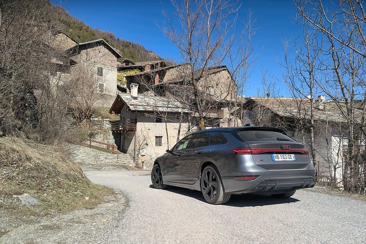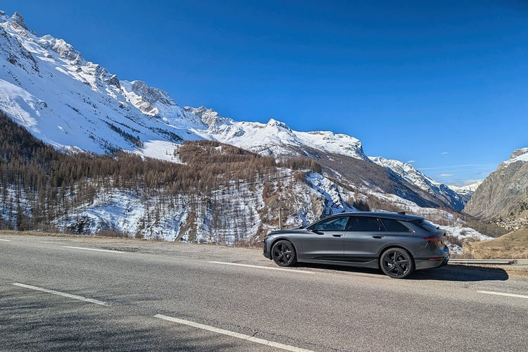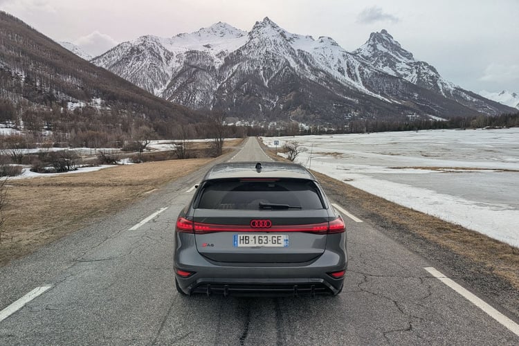 Mais, au fil des kilomètres, ces détails s’effacent un peu : l’Audi A6 Avant e-tron se révèle une grande routière accomplie. Sur des rails sur l’autoroute et agile sur route, elle se plie à tous les exercices. Certains apprécieront même le ressenti plus naturel de sa suspension, qui communique davantage avec ce qu’il se passe sous les roues. Certes, son amortissement demeure ferme, mais elle reste parfaitement vivable au quotidien. Ce n’est que sur les routes cabossées et isolées des Alpes, encore marquées par les rigueurs de l’hiver, que les passagers seront un peu secoués. Mais rien de rédhibitoire.
