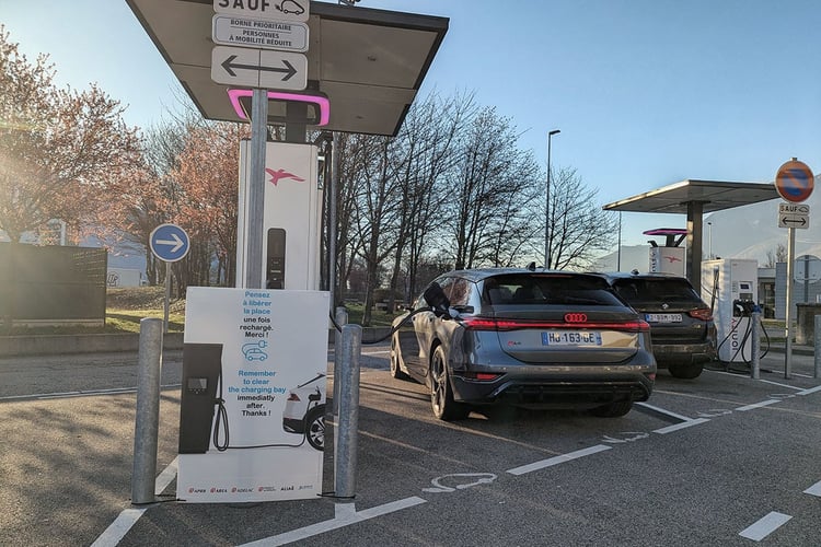 Mais la performance de recharge ne dépend pas uniquement du véhicule. Encore faut-il que les bornes tiennent leurs promesses. Or, la réalité est souvent moins idyllique. Sur une borne Ionity/ABB affichant 350 kW, avec une batterie préconditionnée à 26 °C et un taux de charge de 14 %, l’Audi A6 e-tron n’a jamais dépassé les 180 kW. Résultat : un passage de 15 à 80 % en 25 minutes, contre les 20 minutes dans le meilleur des cas. Même constat en Italie, sur une borne Alpitronic exploitée par Ewiva à Turin. Malgré une batterie chauffée à 29 °C par la route des Alpes et un taux de charge de 12 %, la puissance n’a pas dépassé les 150 kW. Une contre-performance surprenante pour une borne annoncée à 300 kW… et facturée à un tarif élevé de 0,95 €/kWh.