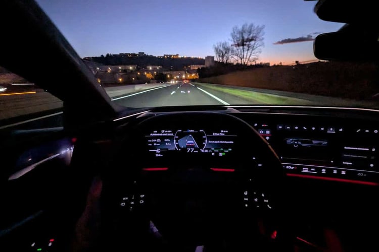 Côté affichage, Audi joue la carte de la sobriété. Exit les couleurs criardes, les animations superflues et les informations surchargées. L’interface s’apparenterait à ces applications minimalistes pour smartphone conçues pour limiter la stimulation visuelle. Un fond noir optimise le confort de conduite nocturne, et une jauge permet d’ajuster la luminosité de tous les écrans et boutons d’un simple geste. Une fonctionnalité bien pensée pour fendre l’obscurité. Toujours au chapitre nuit, notons la projection au sol derrière la malle qui permet de savoir où passer le pied pour ouvrir le coffre. Une lumineuse idée !