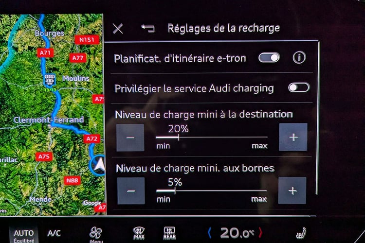 En revanche, le pack Tech Pro et sa suspension pneumatique adaptative s’impose comme un choix judicieux. Non pas pour le gain marginal de 6 km d’autonomie en position basse, mais pour le confort de conduite incomparable qu’il procure. Testée d’abord sur une Audi S6 Avant e-tron juste avant d’enchaîner avec l’A6 Avant e-tron Performance de cet essai, cette suspension se révèle indispensable : les imperfections sont gommées à la perfection et la tenue de caisse reste impeccable. Bien que la suspension classique soit loin d’être décevante, difficile d’imaginer s’en passer après avoir goûté à cette technologie.