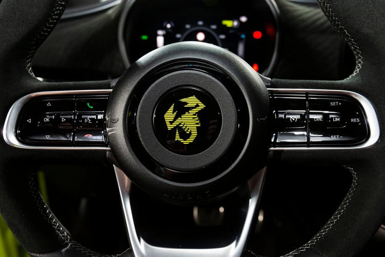 Voici donc la version sportive et exubérante de la cinquecento électrique. Par rapport à sa sœur de chez Fiat, elle conserve l’architecture générale, les trains roulants ou encore la batterie de la version haut de gamme. Elle y ajoute des inserts noirs sur les feux, des ailes élargies, un spoiler et des boucliers spécifiques. Voyez-vous le dessin des entrées d’air en pince de scorpion ? Et puisque l’on aborde l’arthropode, sachez que la griffe inaugure un nouveau logo : le prédateur – dessiné sous forme de stries – est tranché par un éclair.